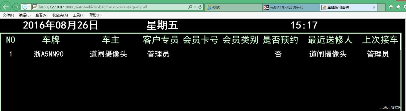 2、车牌识别看板:维修管理---透明车间---车牌识别看板,当有车辆进出时有如下图显示: