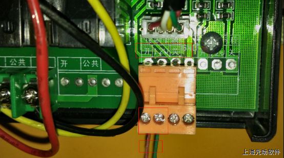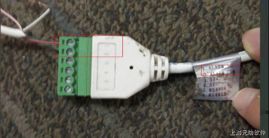 绿色接头可以拔掉方便接线。接线顺序为红色1,绿色2.以达到道闸跟摄像头的连接线