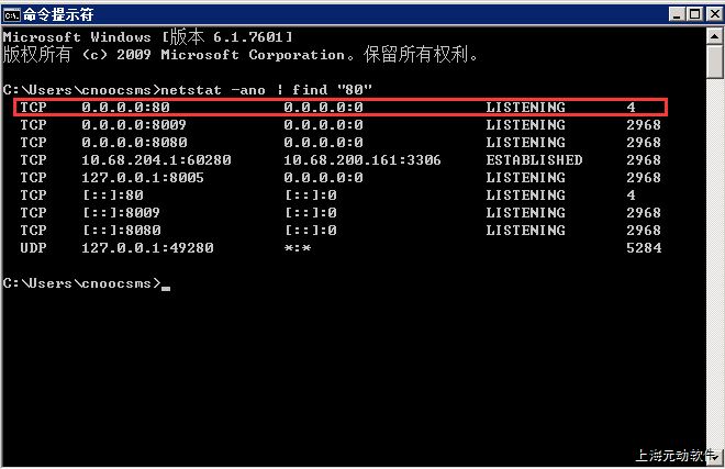 1. 运行'netstat -ano'发现80端口被pid=4的进程占用