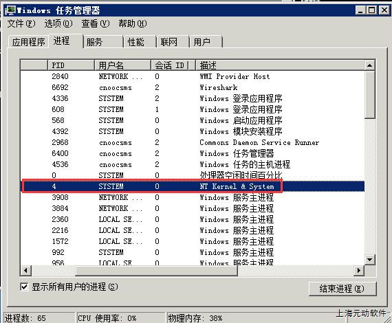 2 .打开任务管理器,发现pid=4的进程,其实是system进程,其对应的进程描述是NT kernel& system。