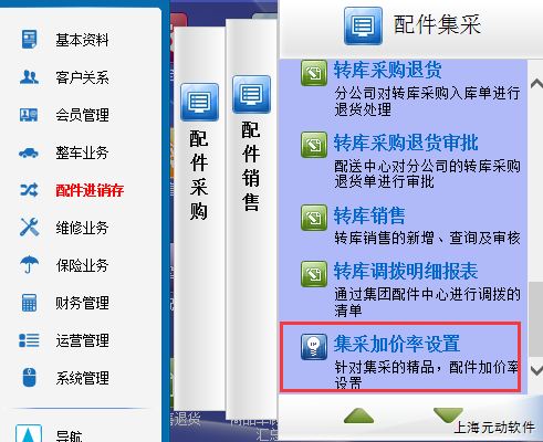 2、菜单路径:配件进销存-配件集采-集采加价率设置。