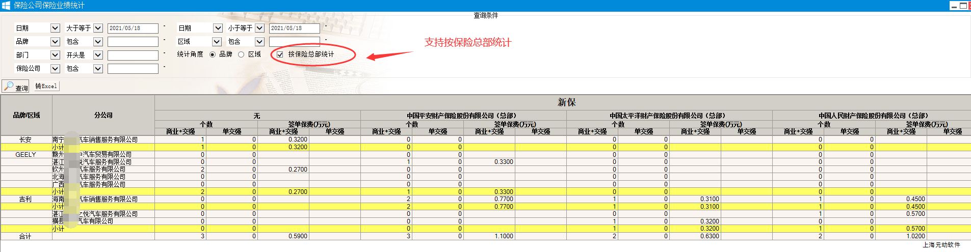 2、保险公司保险业绩统计中增加【按保险总部统计】勾选框来根据需要统计。