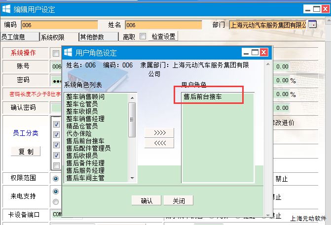 注:权限配置和之前的权限设置相同。可以在角色设定中,对角色权限进行调整。也可在用户设定中的独立独立权限进行新增权限。