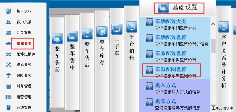 1、在元动电脑端打开整车业务、基础设置、车型配图设置,找到需要设置的车型,并打开。