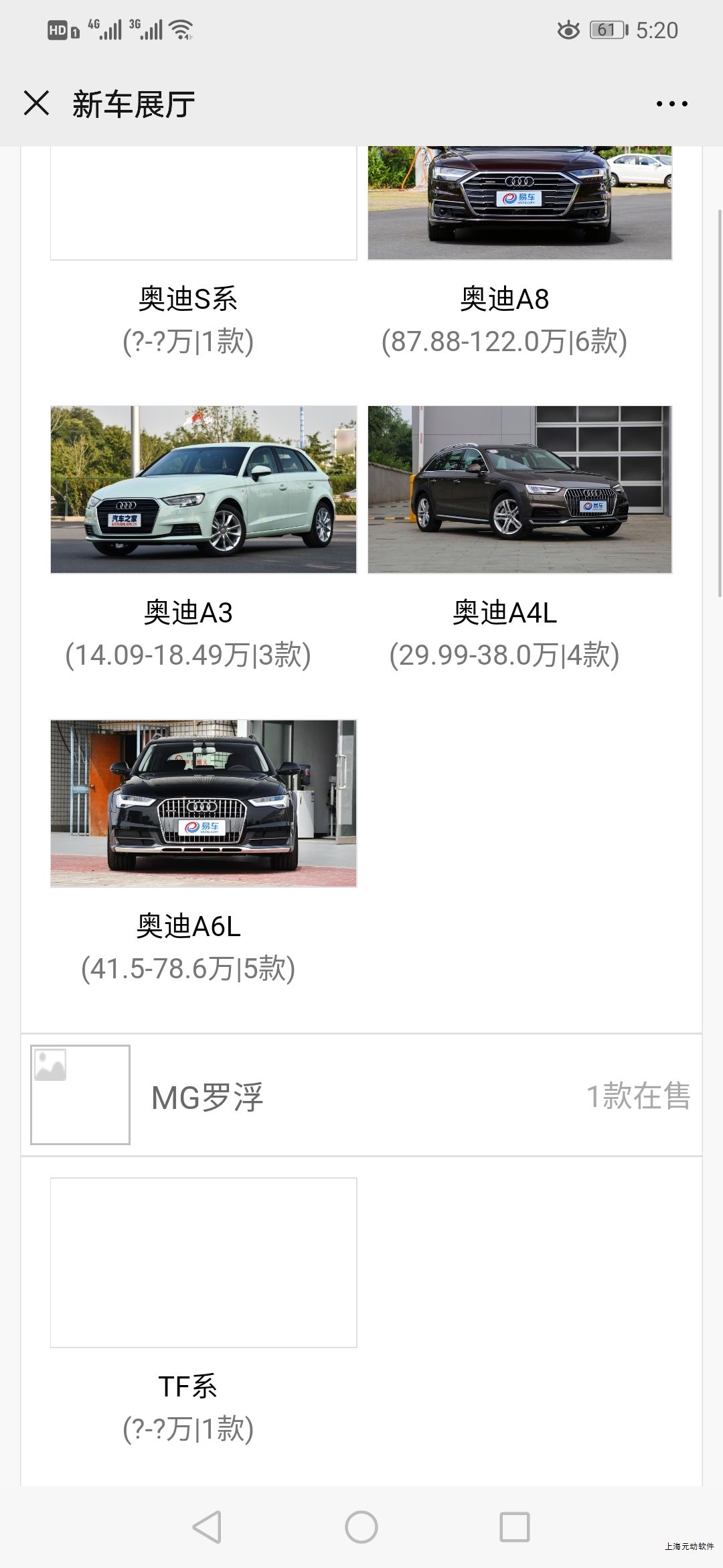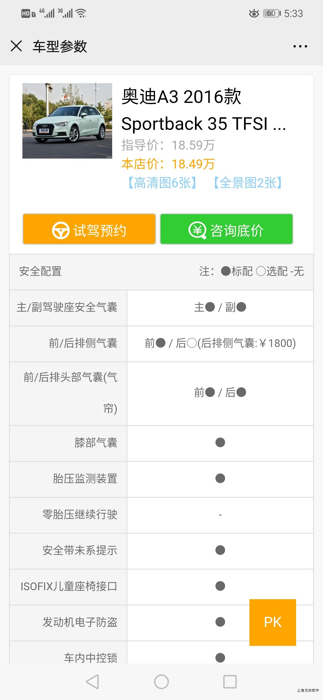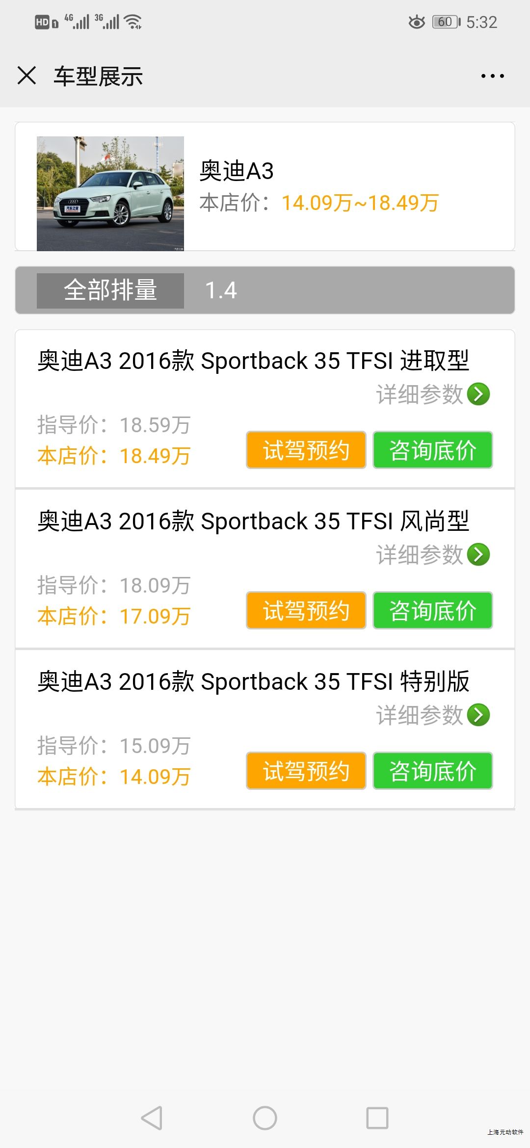 5、点击我们设置的奥迪A3车型,打开详细参数,点击景图,进行后可进行全景浏览。