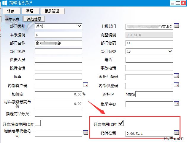 1、组织架构中勾上【开启费用代付】的复选框来启用本功能。并需要指定代付公司栏位,这里的代付公司是指系统内部署的代付服务公司。
