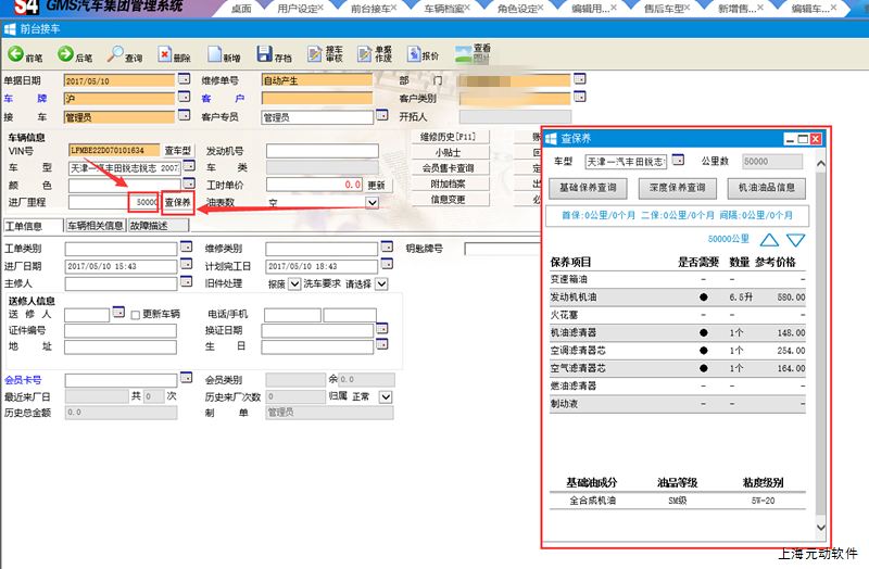 S4最新版本新增了接车时根据公里数查询车型定保信息的功能