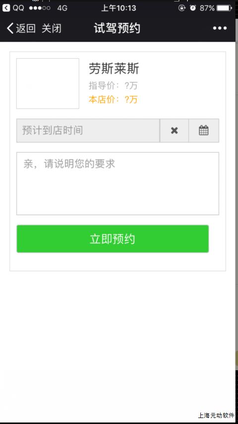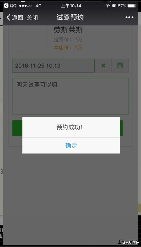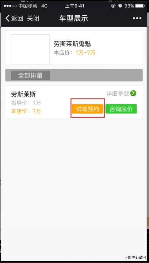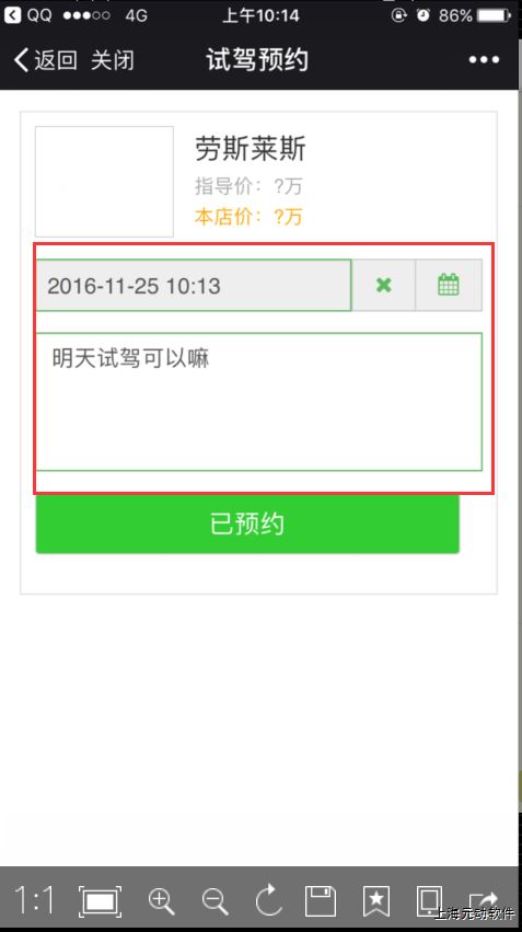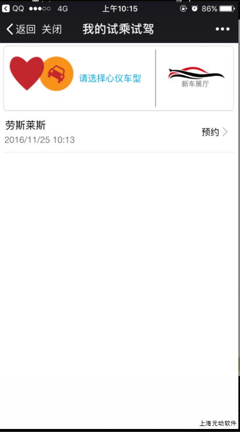 关注微信公众号,进入我的主页-新车展厅-选择意向的车型--点击【试驾预约】: