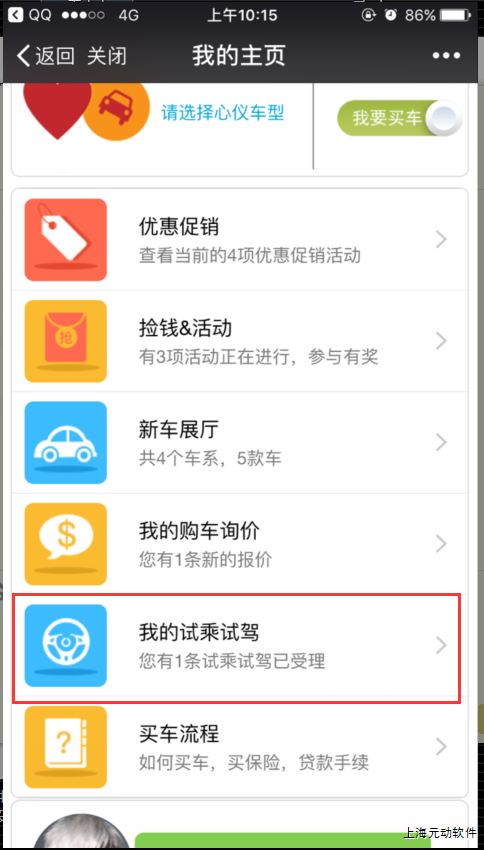 移动助手和微信服务。今天我们对微信服务部分功能(S4微信之试乘试驾)进行操作演示: