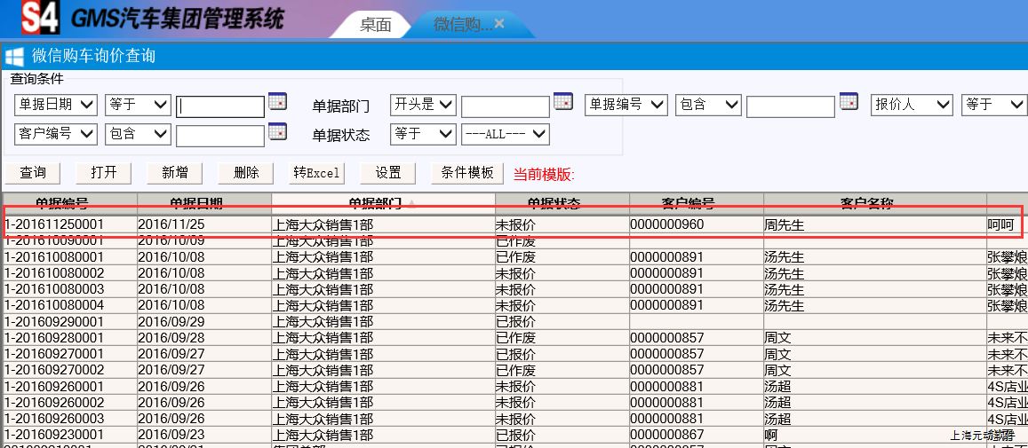 如图进入相关操作目录,找到该客户通过微信提交过来的信息,我们进行回复并提交报价(设为无效即不受理)