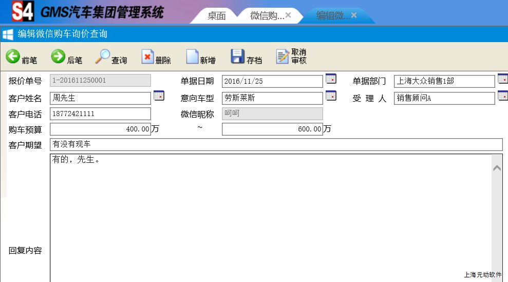 相对于客户在微信端发出的购车询价需求(