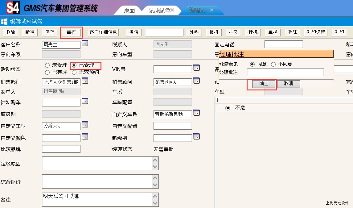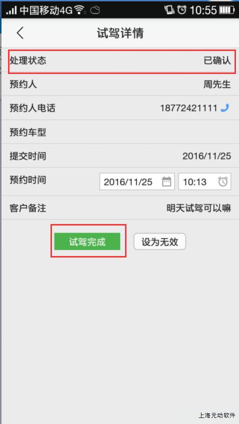 如客户已试乘试驾完成,可点击试驾完成(S4将活动状态该为已完成审核即可)