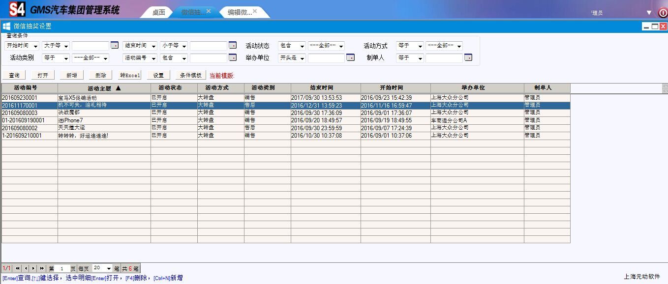 2、进入活动列表目录,可以在此目录点击打开按钮修改现有活动