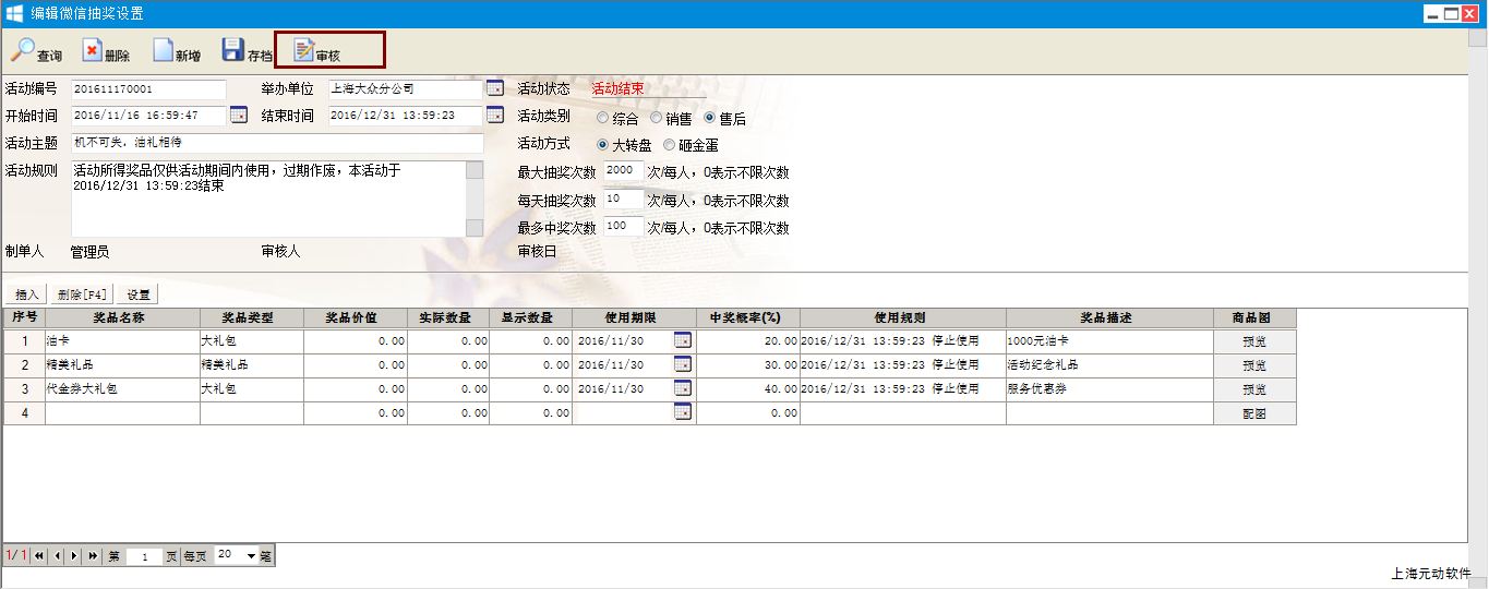 ③ 活动状态:活动开启状态,单据审核后出现开启(结束)活动按钮控制此属性