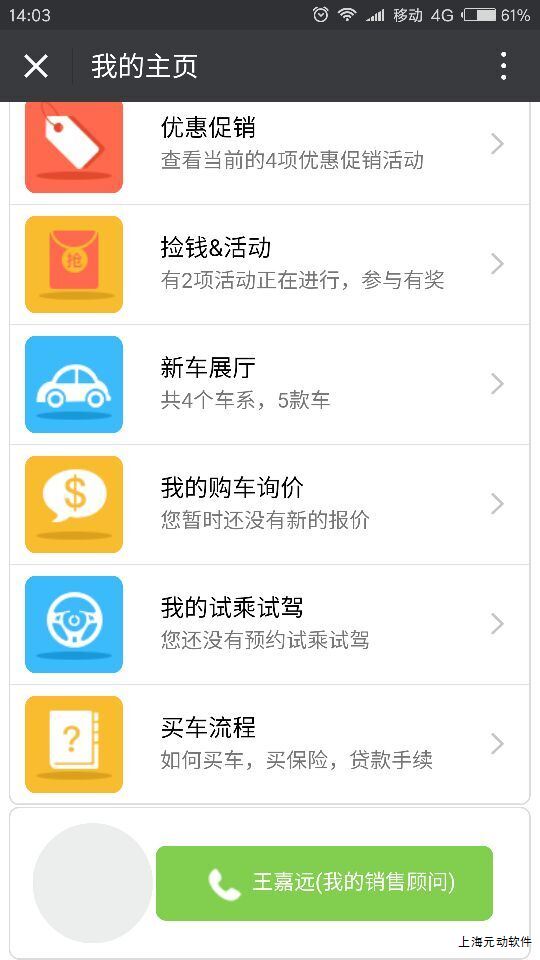 2、界面最下方可以看到自己的销售顾问,点击销售顾问/维修顾问头像