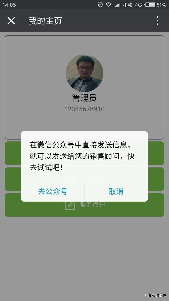 3、 点击按钮可以向销售顾问/维修顾问打电话 或者发送微信以及进行服务点评