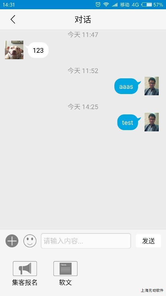 3、对话栏点击左下角+号可以选择发送集客报名、软文等