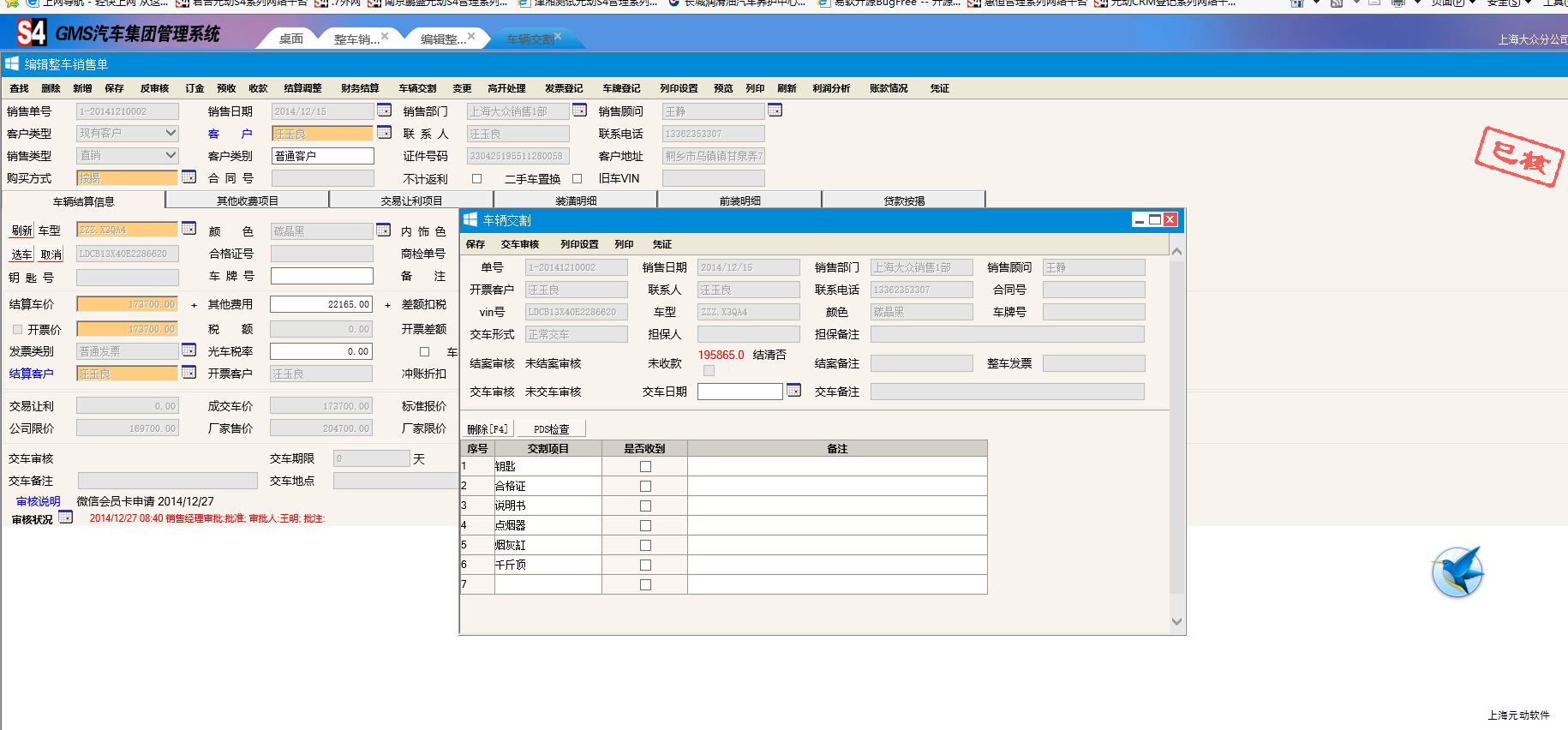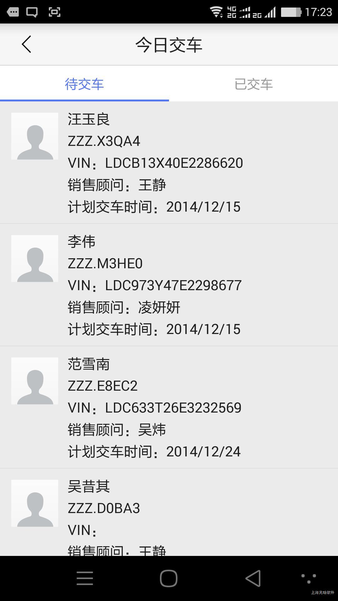 1.待交车:已经做了放车确认,没有车辆交割的车辆
