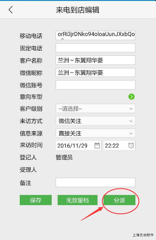 微信关注的粉丝会自动产生未分派的来电到店记录;