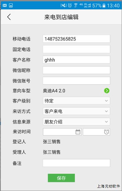 移动助手新增的来电到店记录同样会跟S4数据同步。