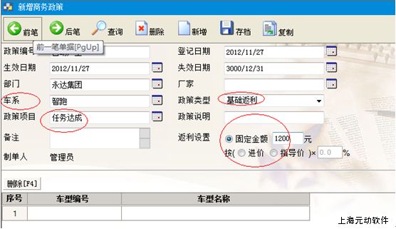 “整车业务—基础设置—商务政策”