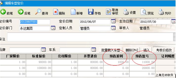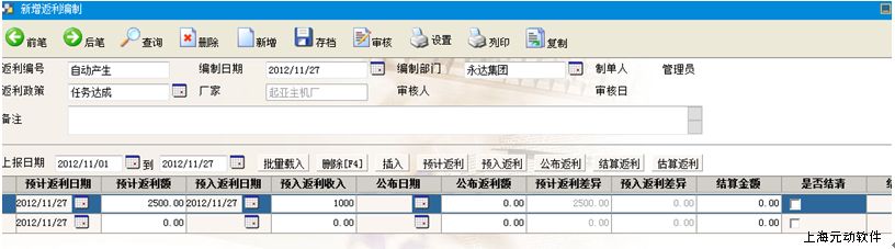 关于元动整车销售中的返利和报表说明
