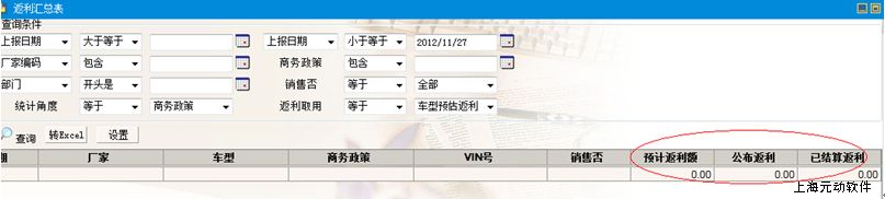 “整车业务—销售统计分析—返利汇总表”