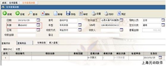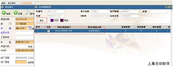 输入车牌号,带出车辆信息,然后单击定保套餐查询