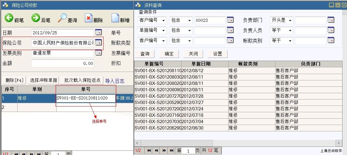 2, 双击单号选择单据