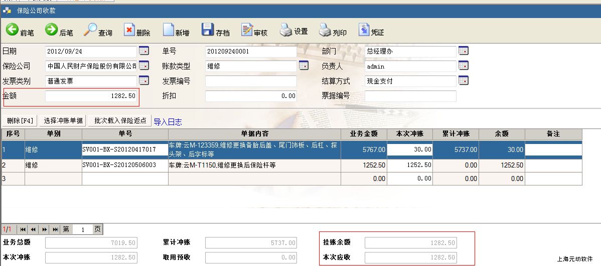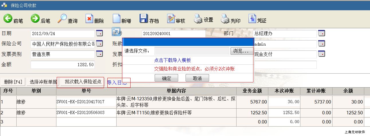 进入菜单:账款管理—保险公司收款