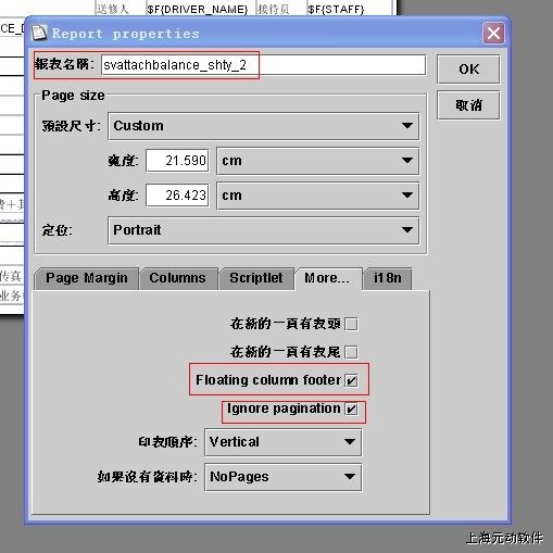2)点击“more” 标签,勾选"Floating column footer" 勾选项和"Ignore pagination"勾选项