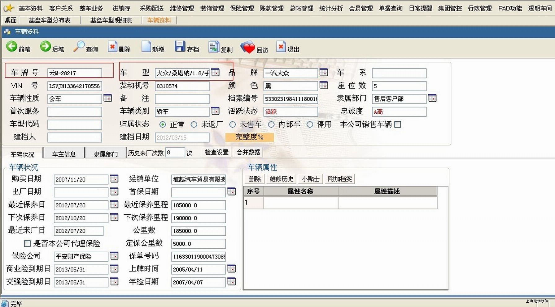2.选择进入客户车辆资料明细