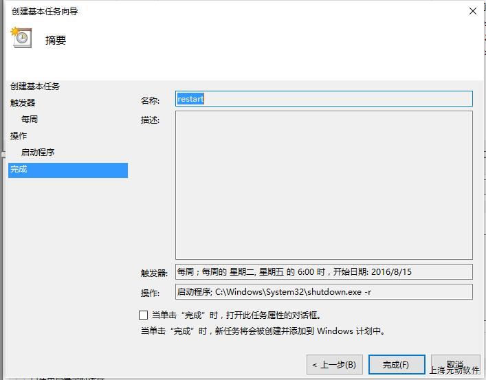 另外,由于java技术本身的限制以及程序的漏洞,java环境的内存会累计占用越来越多的内存,最终会导致崩溃,所以服务器要设置定时重启,以保证内存及时释放。建议每周二和周五早晨重启两次,可以设置windows计划任务来完成自动重启。设置步骤参考下图: