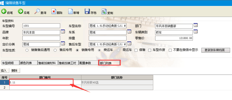 因为集团微信和app涉及到销售车型多分公司公用的问题,销售车型维护增加隶属部门清单。