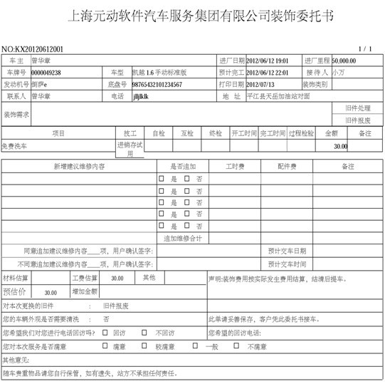 - 客户报销单:适合于部分客户需要报销时,要求实际维修单与报销单项目和价格不同时,单独打印报销单给客户进行报销使用,报销单上的金额和项目不会影响到实际财务账和库存。