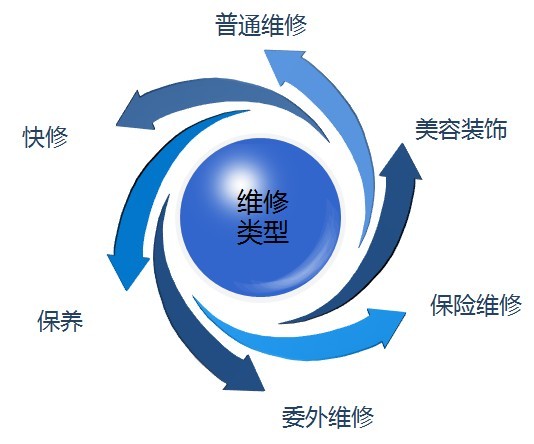 适合于需要进行标准化维修过程管理的业务,如事故车修理(保险维修)、普通维修、委外维修等。实现了从维修接待、维修派工、维修领料、车间维修、完工结算、出厂结案以及维修回访等业务过程的管理。选用标准维修流程时,可帮助实现对于维修过程和配件用料的精细化管理,例如可以控制维修过程、可以统计技工效率、可以进行计划用料等。