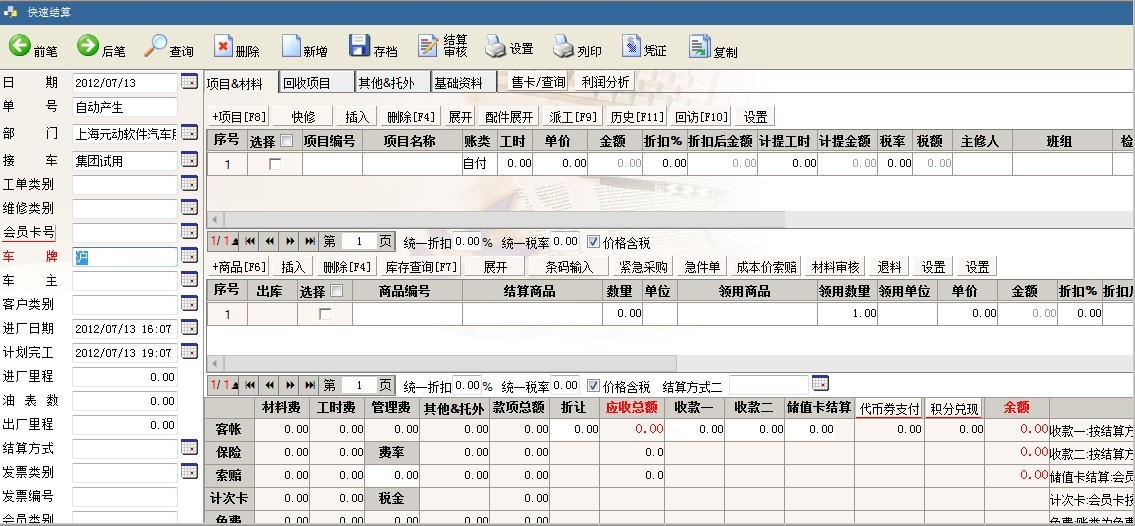 适合于快修、洗车、美容装饰、保养等,可直接进行开单、并结算收款,流程短、操作简单,效率高,适合大部分快速服务业务使用。